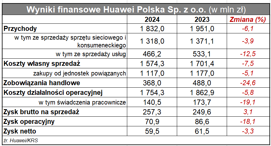 ‒ Spółka ostatecznie odnotowała 6,1 proc. spadek sprzedaży, w głównej mierze z uwagi na zmniejszone zapotrzebowanie na produkty z zakresu energii odnawialnej ‒ podaje Huawei Polska w raporcie za 2024 r.