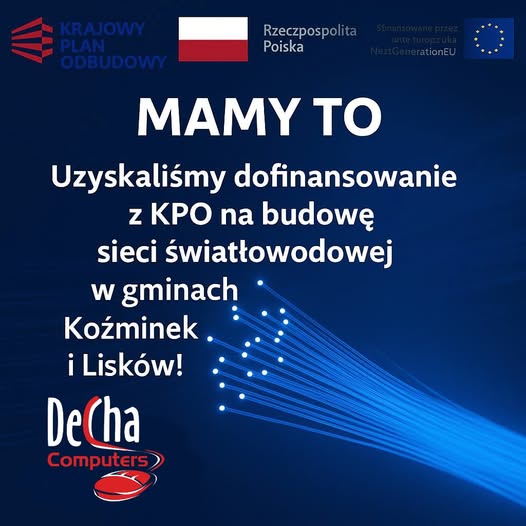 DeCha Computers, wielkopolski ISP działający na na terenie gmin Koźminek, Lisków i Opatówek, jest jednym z najmniejszych beneficjentów 4. konkursu KPO na budowę sieci w białych plamach. Operator pozyskał 818 tys. zł na rozbudowę światłowodów w gminach Koźminek i Lisków i jest bardzo usatysfakcjonowany.